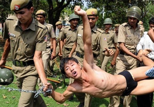 Η αστυνομία της Ινδίας συνέλαβε έναν άντρα που διαμαρτυρόταν φορώντας μονάχα τα εσώρουχά του.